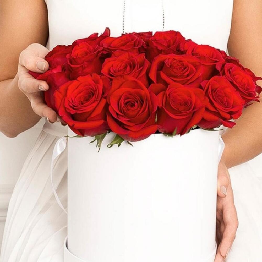 25 красных роз в Белой коробке