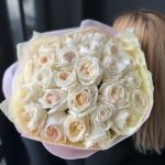 Лента атласная – 1 шт.Упаковка дизайнерская – 2 шт.роза вайт о хара( ароматная) – 25 шт.
