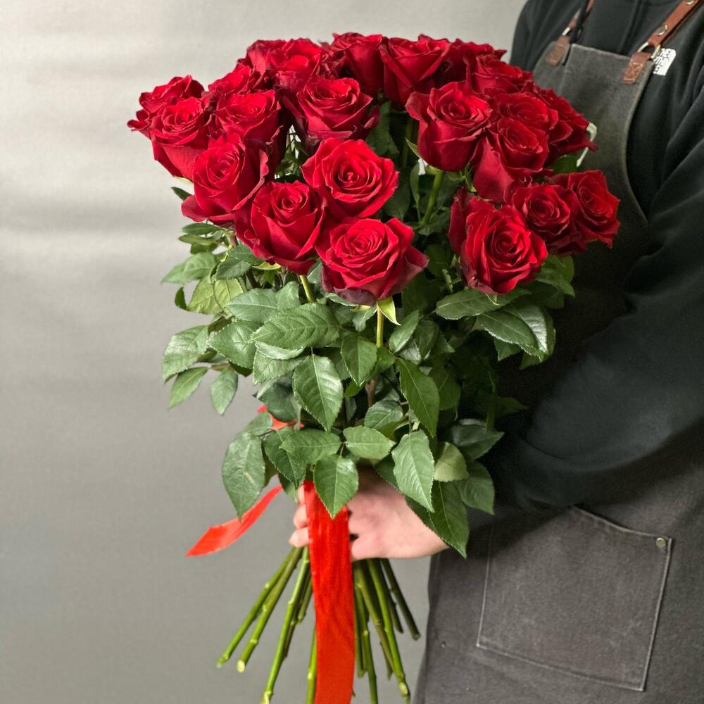 роза freedom 70 см – 25 шт.Лента атласная – 1 шт.