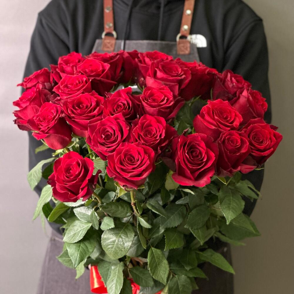 Монобукет из 25 роз сорта Freedom (70 см)