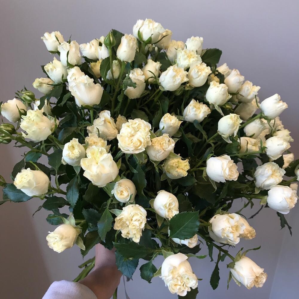 Лента атласная – 1 шт.Кустовая роза – 9 шт.