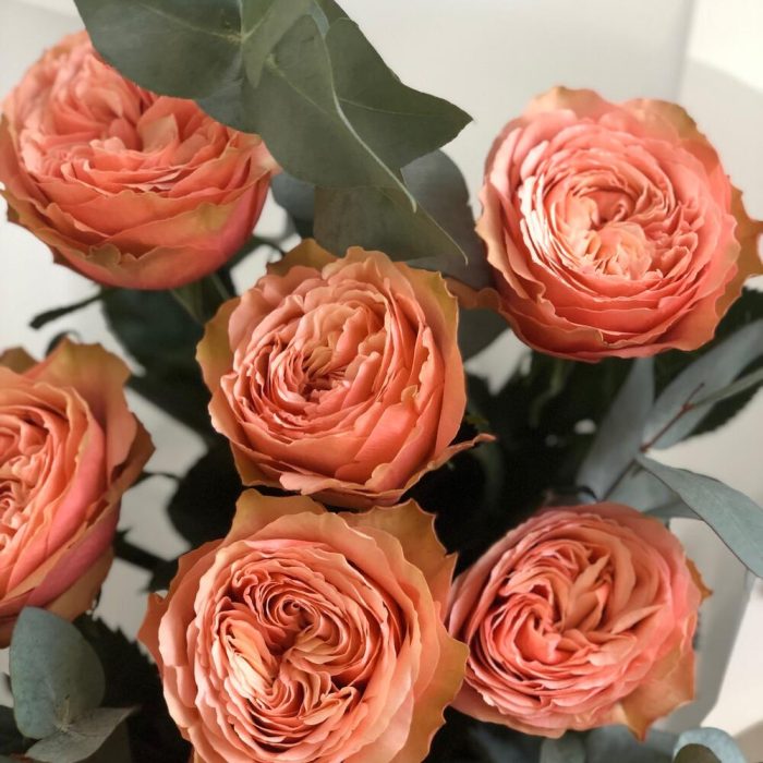 kahala роза пионовидная – 9 шт.Эвкалипт – 5 шт.Упаковка дизайнерская – 1 шт.
