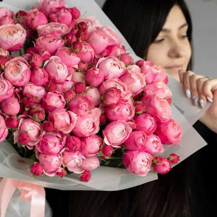 Гвоздики, Кустовые розы, Пионовидные розы, Розы