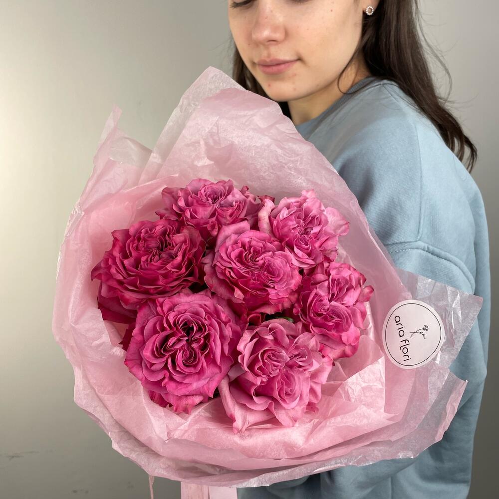 Роза Эквадор – 7 шт.Упаковка дизайнерская – 1 шт.Сумочка – 1 шт.любовь флориста – 1000 шт.записка с вашим текстом – 1 шт.советы по уходу за срезанными цветами – 1 шт.шоколадный медиан ручной работы – 1 шт.