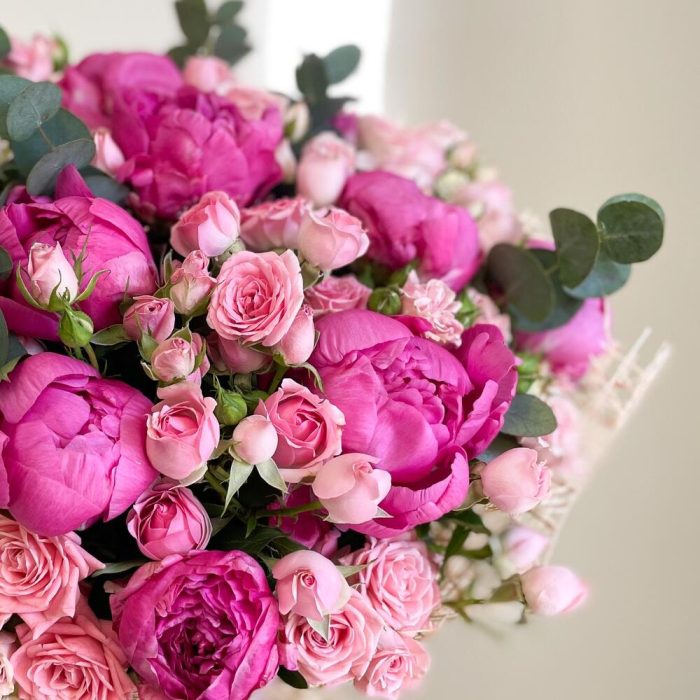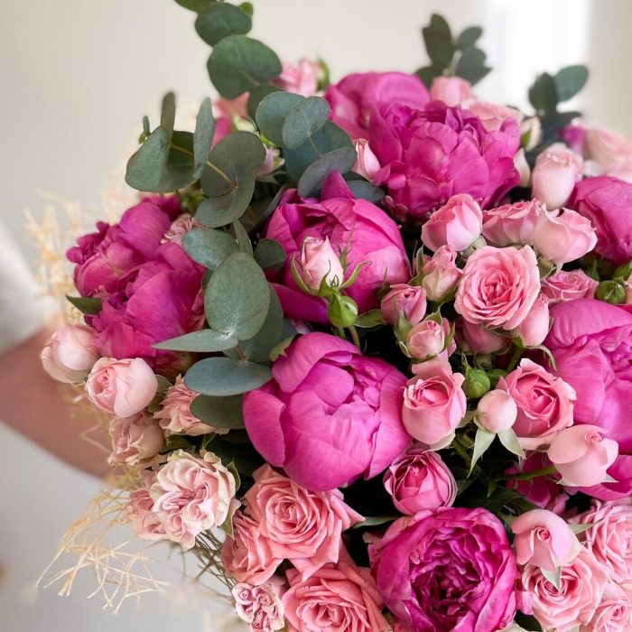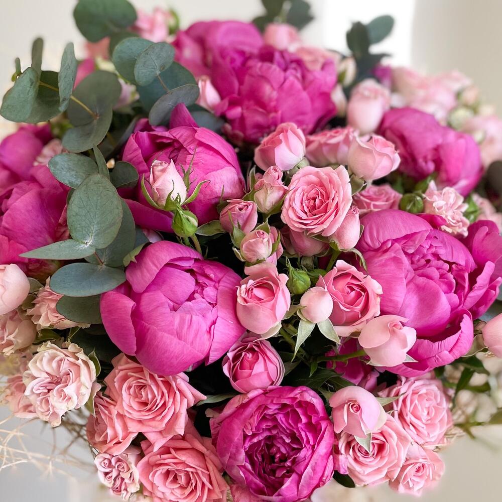 Гвоздики, Кустовые розы, Пионовидные розы, Розы
