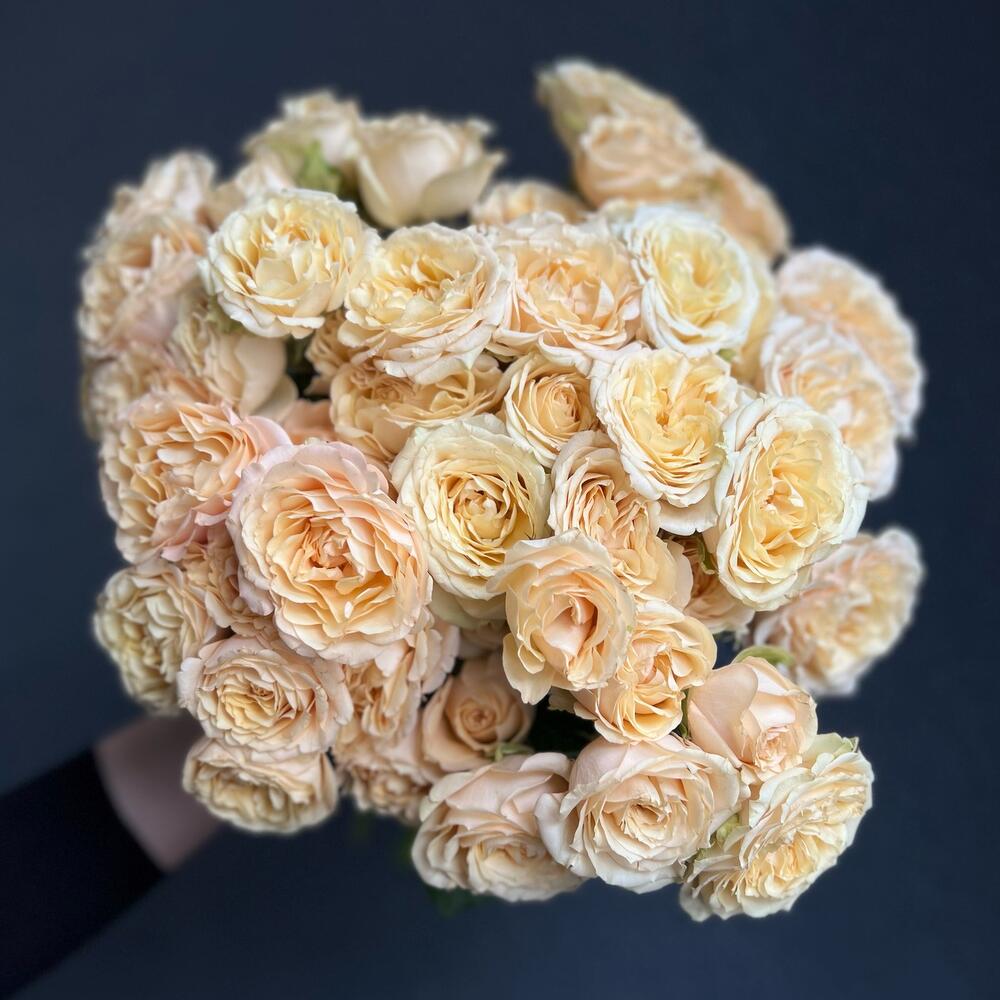 Моно букет из ароматной розы сорта Сахара в песочных оттенках станет прекрасным дополнением любого интерьера