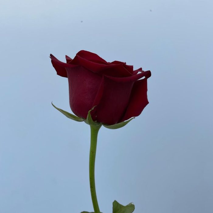 Классическая роза насыщенного красного цвета. Бархатный бутон раскрывается диаметром до 5-7 см, высота стебля 40-50 см. Стойкость 5-7 дней при правильном уходе: обновлять срез и менять воду раз в 1-2 дня.Подойдет для подарка изысканным леди