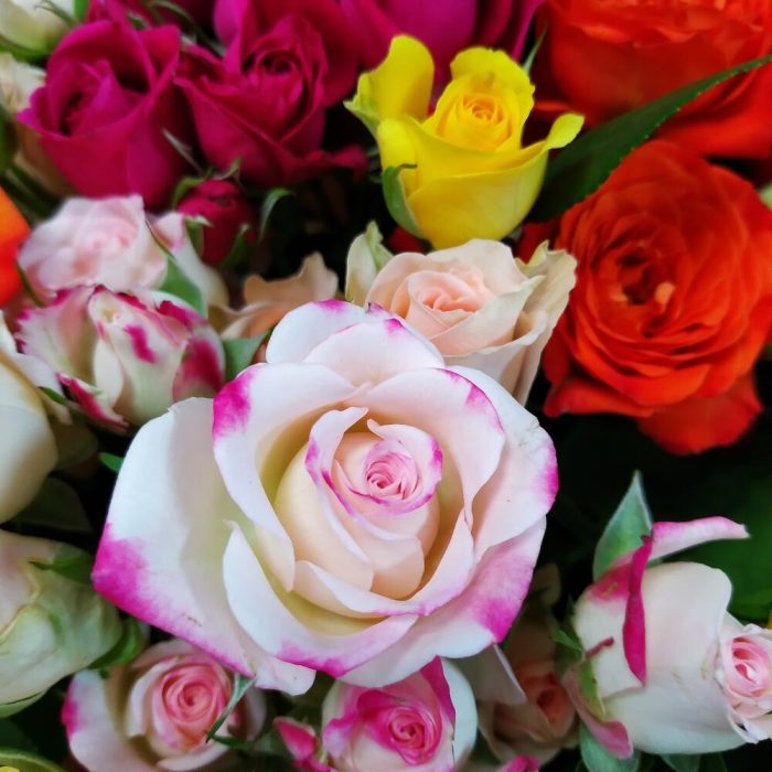 Все женщины любят цветы, но большинство из них предпочитает розы. Еще бы, ведь они завораживают своей красотой и покоряют своим ароматом.Прекрасный букет из кустовых роз, станет идеальным подарком для самых любимых и близких!Памятка для букета:1. Чистая вода раз в сутки.2. Стебли подрезаем на 0,5см при каждой смене воды.3. Ставим в прохладное место, но не у окна.4. Чтобы вода оставалась свежей, не допускайте попадания листьев и лепестков в воду.Друзья, обратите внимание, что цвет упаковки может быть другим, в зависимости от наличия на складе.
