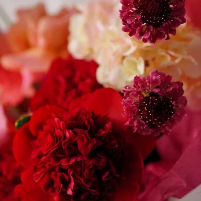 Гортензия – 2 шт.Пион – 3 шт.роза гермоза – 3 шт.Антуриум – 2 шт.гривелия – 3 шт.Скабиоза – 2 шт.