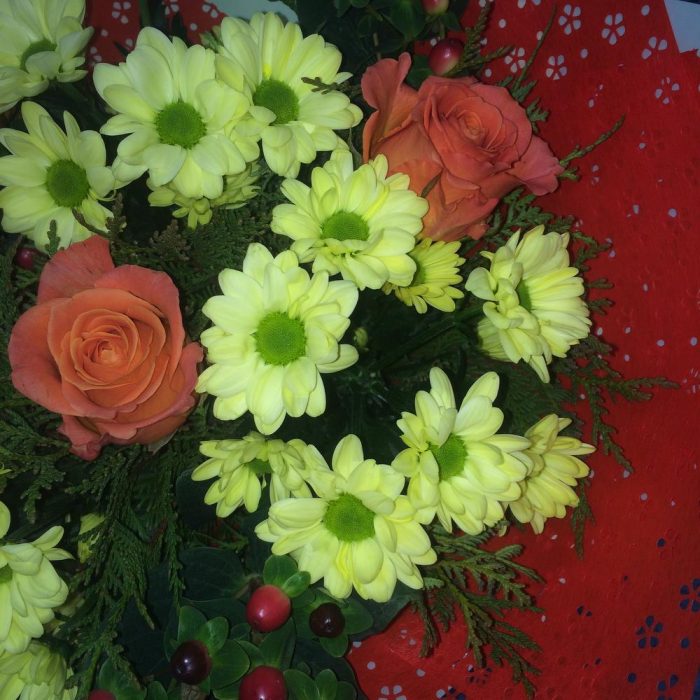 Категории: Кустовые розы, Розы, Хризантемы