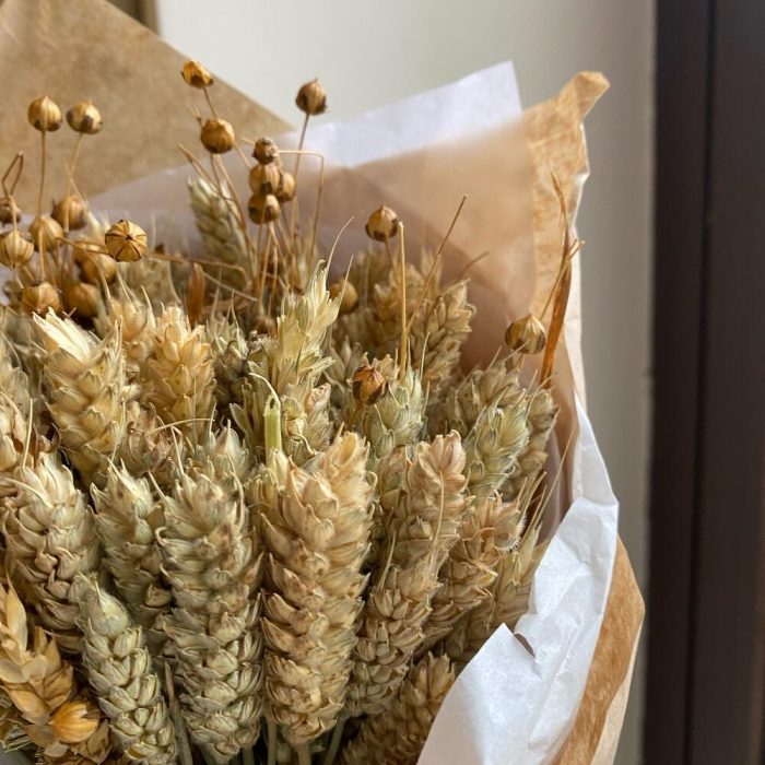 Букет сухоцвет из пшеницы и льна