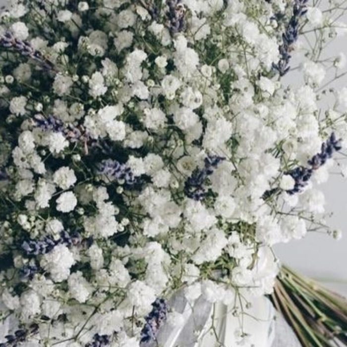 Гипсофила – 25 шт.Лаванда (сухоцвет) – 35 шт.Лента атласная – 1 шт.Пакет подарочный – 1 шт.
