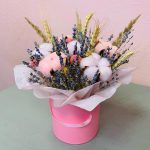 “Атлас☁️” – цветочная композиция с зефиром в деревянном ящике