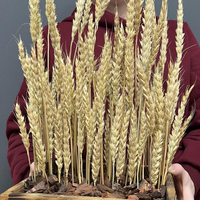 Ящик деревянный – 1 шт.Оазис для сухоцветов – 2 шт.Кора сосны – 1 шт.пшеница банч – 3 шт.