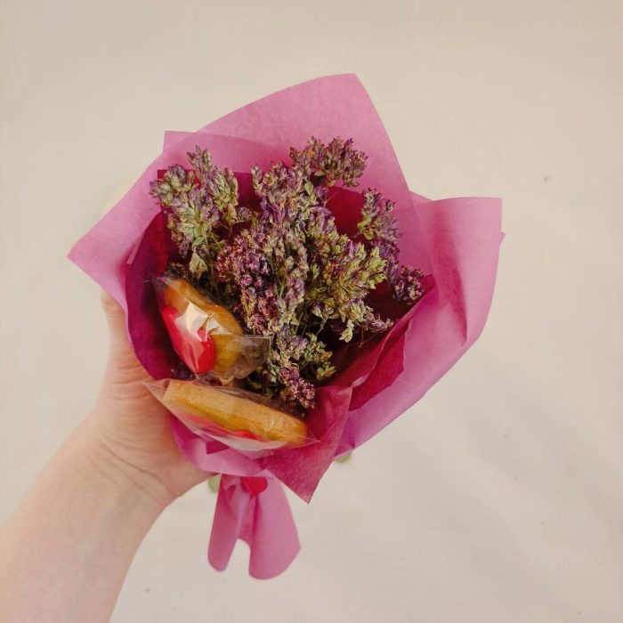 Душица – 1 шт.Пряник имбирный – 2 шт.Розовая упаковка – 1 шт.