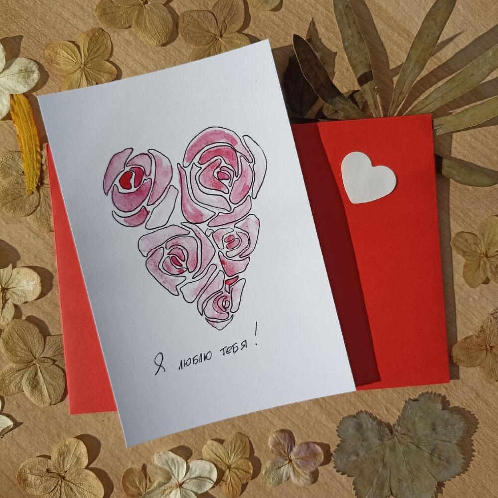 Открытка с любовью нарисована художником акварелью и отпечатана на плотной бумаге. Таких открыток нет нигде, кроме нашего магазина К каждой открытке Вы можете прислать текст в чат, который мы напечатаем в нескольких вариантах. Вы сможете выбрать тот шрифт, который Вам больше по душе, а мы аккуратно приклеим его к открытке.Открытку доставляем в ярком красном конверте, заклеенном сердечком, а внутрь кладём сухоцветы – сердечки из лепестков, лепестки, цветы и пару наклеек-сердечек❤Ждём Ваш текст для открытки в чате