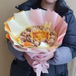 “Сладкое сердце ” – цветочная композиция с сладостями в коробке “Сердце”