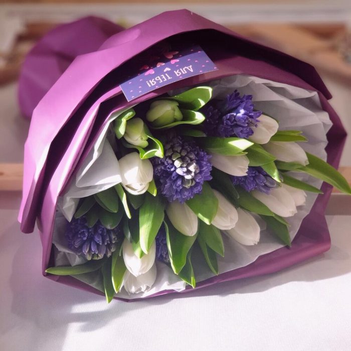 Белые тюльпаны с гиацинтами