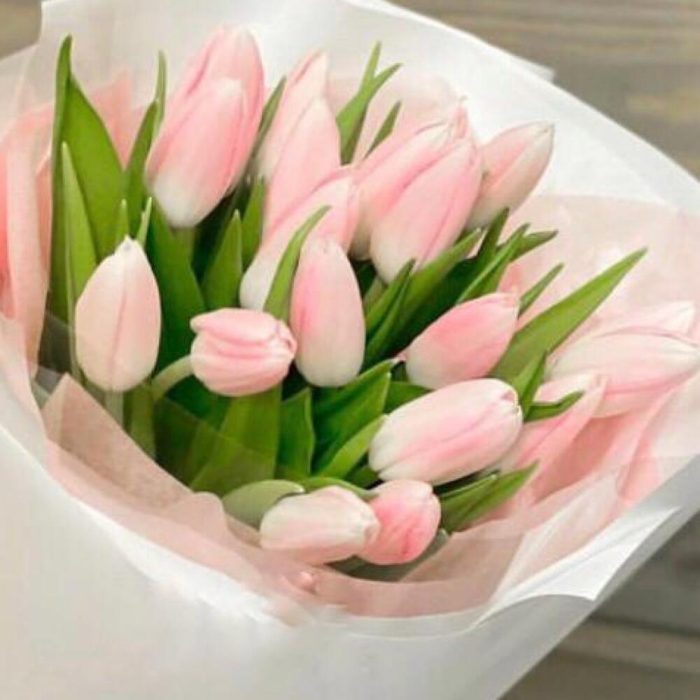 Тюльпан – 15 шт.Лента атласная – 1 шт.Тишью – 2 шт.Упаковка дизайнерская – 2 шт.