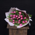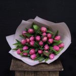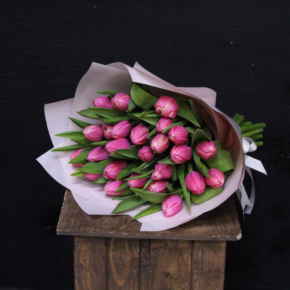 Лента атласная – 1 шт.Пленка дизайнерская – 2 шт.тюльпан пионовидный коламбус – 25 шт.